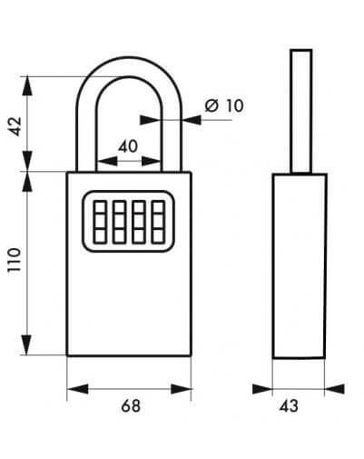 Lichaam van gegoten legering. Mechanisme met 4 ringen. Herinstelbaar cijfer, 10.000 mogelijke cijfercombinaties.