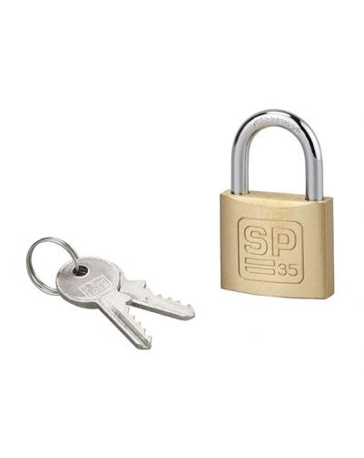 Brass monobloc behuizing. Poort van gecementeerd staal. Eenvoudige verankering. Het hangslot is ontworpen voor gebruik binnen gebouwen, voor het effectief beveiligen van kasten en laden, dozen en kisten, deuren van kamers of bijgebouwen, etc. Bij dit hangslot worden twee sleutels geleverd.