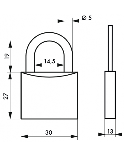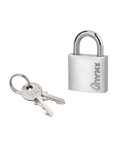 Aluminium monoblokhuis, vernikkeld stalen hek. Stiftmechanisme. 2 messing sleutels met vernikkelde afwerking. Gemaakt van duurzaam aluminium en staal, biedt dit hangslot een hoge slagvastheid.