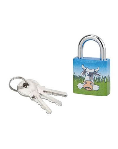 Het CHÂ’TIOTE MEUH 6 sleutelslot, gemaakt van staal, is geschikt voor het beveiligen van lockers en garderobes, maar ook voor het afsluiten van deuren van garderobes of bagage. Bij dit veiligheidshangslot worden drie vernikkelde stalen sleutels geleverd, om de toegang te delen of in geval van verlies van een sleutel. Dit Thirard hangslot heeft een hoge slagvastheid en is gepersonaliseerd met afbeeldingen die passen bij de voorkeuren van kinderen en tieners.