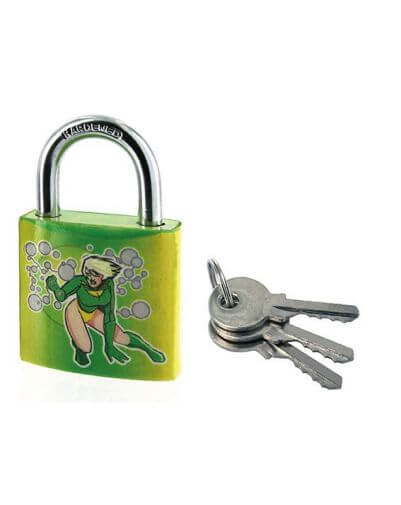 Het stalen EXTRA LOCK sleutelslot is geschikt voor het beveiligen van lockers en garderobes, maar ook voor het afsluiten van deuren van garderobes of bagage. Bij dit veiligheidshangslot worden drie vernikkelde stalen sleutels geleverd, om de toegang te delen of in geval van verlies. Dit hangslot van THIRARD heeft een hoge slagvastheid en is gepersonaliseerd met afbeeldingen, zodat het ook geschikt is voor kinderen en tieners.