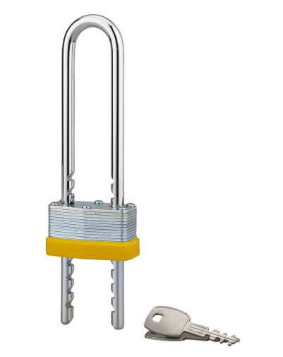 Het UPPER sleutelslot is ontworpen voor gebruik binnen gebouwen, voor het effectief beveiligen van kasten en lades, kisten en kasten, deuren van kamers of appartementen, enz. Het gelamelleerde lichaam, gemaakt van gegalvaniseerd staal, geeft het een zeer hoge schokbestendigheid en een hoge mate van veiligheid. Bij dit hangslot van THIRARD worden twee sleutels geleverd, om de toegang te delen of in geval van verlies. De PVC-coating kan in verschillende kleuren worden aangepast. De extra hoge poort kan worden ingesteld op een hoogte tussen 75 en 120 mm.
