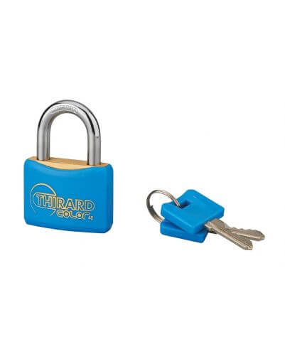 Het THIRARD sleutelslot is ontworpen voor gebruik binnen gebouwen, voor het effectief beveiligen van kasten en laden, dozen en kisten, deuren van kamers of bijgebouwen, enz. Bij dit Thirard slot worden twee sleutels geleverd, om de toegang te delen of in geval van verlies van een sleutel. De sleutel kan alleen worden gekopieerd van het sjabloon. Zowel de body van het hangslot als de sleutels zijn omhuld met PVC, in verschillende kleuren (groen, roze, blauw, zwart of geel). Gemaakt van massief messing, biedt dit veiligheidshangslot een hoge slagvastheid.