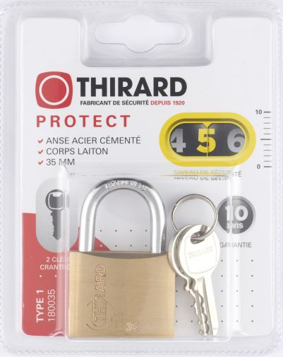 Het sleutelslot TYPE 1 is ontworpen voor gebruik binnen gebouwen, om kasten en laden, kisten en kasten, deuren van kamers of bijgebouwen, enz. doeltreffend te beveiligen. Bij dit Thirard-slot worden twee sleutels geleverd, om de toegang te delen of in geval van verlies van een sleutel. De sleutel kan alleen worden gekopieerd van het patroon. Dit veiligheidshangslot is gemaakt van massief messing en biedt een hoge slagvastheid.
