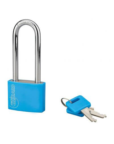Het TYPE 1 ALU sleutelslot is ontworpen voor gebruik binnen gebouwen, om kasten en lades, dozen en kisten, deuren van kamers of bijgebouwen, enz. effectief te beveiligen. Er worden twee sleutels meegeleverd met dit THIRARD slot, om de toegang te delen of in geval van verlies van een sleutel. Dit veiligheidshangslot is gemaakt van aluminium en is licht, sterk en duurzaam. Zowel de body van het hangslot als de sleutels zijn omhuld met PVC in verschillende kleuren.
