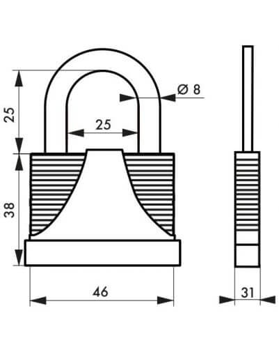 Gegalvaniseerde stalen behuizing met PVC-coating. Poort in vernikkeld gecementeerd staal. Messing 4-ring mechanisme. Dubbel slot. Herinstelbaar cijfer met 10.000 mogelijke cijfercombinaties. Verschillende kleuren.