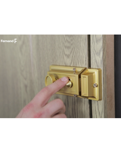 Met een klassiek ontwerp dat al tientallen jaren oud is, is dit toegepaste slot gebaseerd op een sluitmechanisme met een RIM-cilinder (tong) aan de buitenkant en een ovale draaiknop aan de binnenkant. Zowel de montage als het gebruik van dit toegepaste slot van THIRARD is heel eenvoudig, waarbij de elegantie van het bekende ontwerp en de gouden afwerking samengaan met de veiligheid van de robuuste, gebogen stalen constructie. Om te voorkomen dat de grendel losschiet, is er ook een extra knop om de grendel in de gesloten stand te vergrendelen.