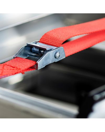 Deze spanband van THIRARD is geschikt voor het vastzetten en vastsjorren van werkmaterialen en goederen aan de aanhanger of motorkap. De meervoudig getande, nokbelaste nok voorkomt effectief dat de spanband losraakt, waardoor items stevig verankerd blijven.