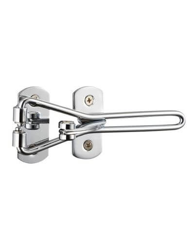 Dit deurslot van THIRARD, met opdekplaat en grendel, is een eenvoudig en zeer stevig apparaat om de toegangsdeur te beveiligen, zodat deze alleen op een kier kan worden geopend om de identiteit te controleren van degenen die voor de deur staan. De vorm en de verchroomde afwerking maken het zowel esthetisch als duurzaam. Het ontgrendelen van de deuropener kan niet vanaf de buitenkant van de deur, maar alleen vanaf de binnenkant als de deur gesloten is. Dit beveiligingssysteem voor de toegangsdeur is een betrouwbaar secundair apparaat voor de beveiliging van huis of appartement.