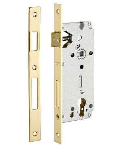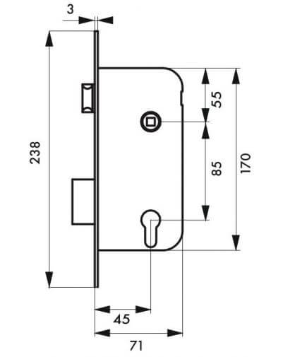 Toegangsdeurslot, verzonken, 45 x 85 mm, voor Europrofiel cilinder, gegalvaniseerd – geschikt voor houten deuren