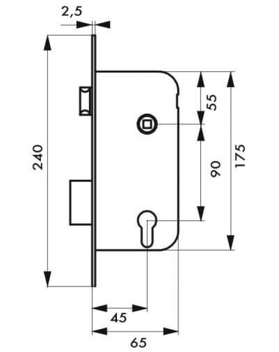 Dit ingegraven insteekslot 45 mm as 45 mm tussenas 90 mm, gemaakt van diepgetrokken staal, is ontworpen voor montage in toegangsdeuren om het huis of de berging te beveiligen. De verende grendel is omkeerbaar zonder dat de behuizing hoeft te worden gedemonteerd, zodat dit slot kan worden gebruikt voor zowel rechts sluitende als links sluitende deuren. Het slot kan worden uitgerust met elke Europese profielcilinder.