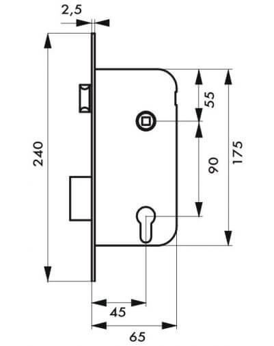 Dit ingegraven insteekslot 45 mm as 45 mm tussenas 90 mm, gemaakt van diepgetrokken staal, is ontworpen voor montage in toegangsdeuren om het huis of de berging te beveiligen. De verende grendel is omkeerbaar zonder dat de behuizing hoeft te worden gedemonteerd, zodat dit slot kan worden gebruikt voor zowel rechts sluitende als links sluitende deuren. Het slot kan worden uitgerust met elke Europese profielcilinder.