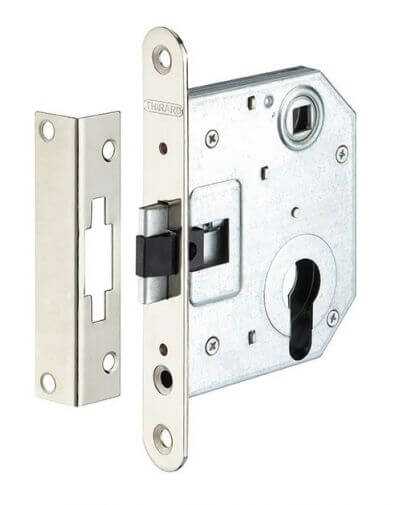 Dit ingegraven nachtslot 55 mm as 55 mm interax 55 mm, gemaakt van diepgetrokken staal, is ontworpen om in toegangsdeuren te worden gemonteerd om het huis of de berging te beveiligen. De nachtschoot en de platte nachtschoot zijn samengevoegd en symmetrisch, dus dit slot is omkeerbaar. Het slot kan met elke Europese profielcilinder worden gemonteerd.