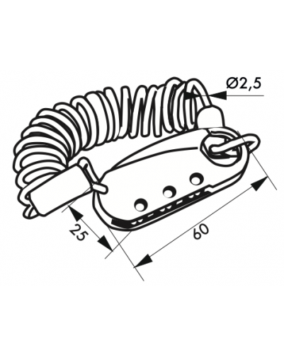 Gevormde legering. Staalkabel Ø 2,5 mm lang. 1,00 m. Mechanisme met 3 adereindhulzen. Combinatie aanpasbaar.