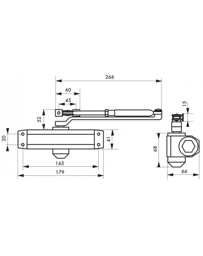 De hydraulische deurdemper van het merk Thirard zorgt ervoor dat de deur automatisch en geruisloos sluit. De demper is omkeerbaar (kan links of rechts worden geïnstalleerd) en wordt geleverd met een montageset. De sluitsnelheid wordt aangepast door de speciale schroef vaster of losser te draaien.